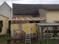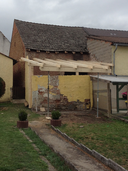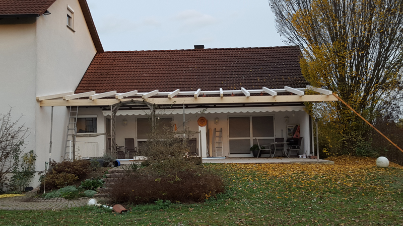Verlängerung des Scheunendaches und Umbau zur Pergola -> gleichzeitig als Überdachung für zukünftige Terrasse gedacht. (Komplettbau inkl. Spenglerei) Röthlein in der Nähe des Sportplatzes.