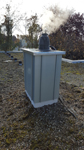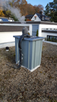 Kaminverkleidung mit vorbewittertem Zinkblech und einer Abdeckung aus Edelstahlblech (Flachdachbungalow in Schweinfurt)