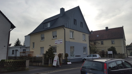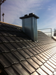 Neubau (Einfamilienhaus) in Geldersheim bei Schweinfurt. Neueindeckung und Kaminverkleidung mit verzinktem Blech.