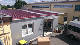Anbau an Firmenbebäude (Erweiterung des Produktionsbereiches) der Firma MEFO in Röthlein. Komplettbau (Holzkonstruktion, Trapezprovilebleche und Lichtplatten auf dem Dach, Verkleidung der Außenwand mit Sandwich Dach- und Wandpaneelen, Einbau von Fenstern, Spenglerarbeiten -> Dachrinne)